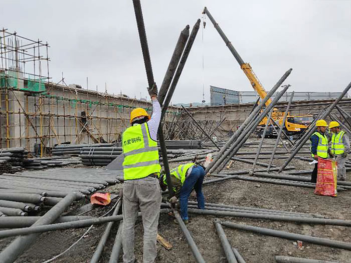 第三,螺栓球网架库尔勒施工现场的难易程度。
