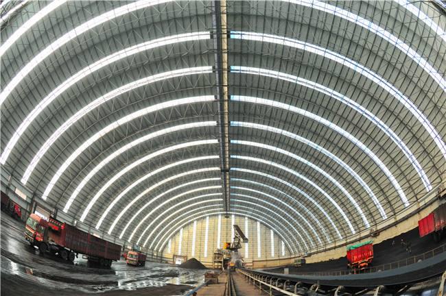 堆场料场封闭式主体结构为新型的钢库尔勒网架结构,维修结构为库尔勒钢结构库尔勒不锈钢板和纤维增强塑料灯具,其外形以库尔勒网架式和平板为主,连接柱库尔勒施工自由,设置喷雾自动喷水系统,从而可以实现棚内所有物料的覆盖,减少物料在运输过程中的损耗,起到防尘的作用,减少工厂关闭后的二氧化硫排放量,50mg/m3颗粒排放量小于10mg/m3,非常适合低能耗。低闭库自动感应反应对库存轮胎进行清洁,确保轮胎不受道路污染;封闭的储存区可从源头控制粉尘污染,控制无序排放。